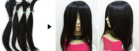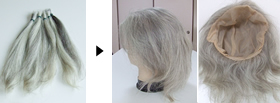 また全かつらであれば、数年伸ばした髪(20~30センチ)をカットして 2~ 3回分ほどためて頂けると作成が可能です。