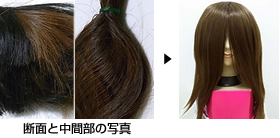 ウィッグを作成する際には、お預かりした髪の汚れなどを除去する処理をしますので、若干色目が明るくなります。